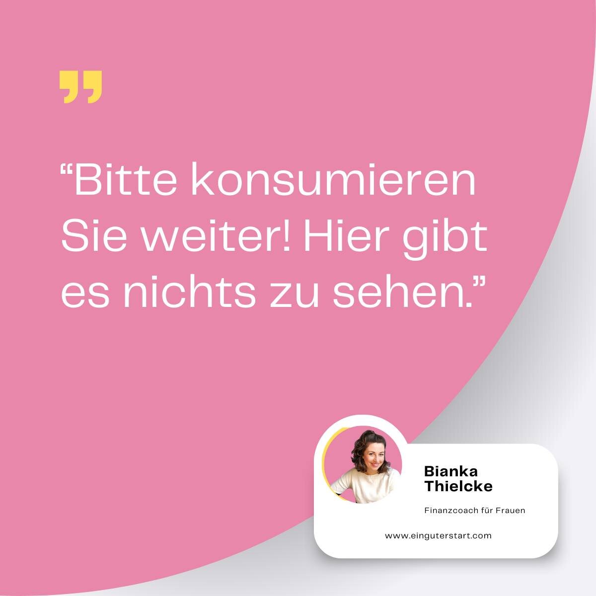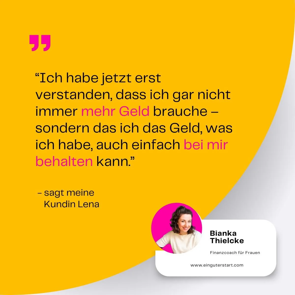 „Biankas Kurs holt Frauen genau da ab wo wir sind, unabhängig von Erfahrungsstand, Einkommenshöhe und Zukunftsplänen. Ein tolles Format, dass von der Gesamtkonstellation der Gruppe und seiner Leichtigkeit profitiert. Alles darf, nichts muss. Genau das, was man für das eigene Mindset im Umgang mit Geld braucht. “